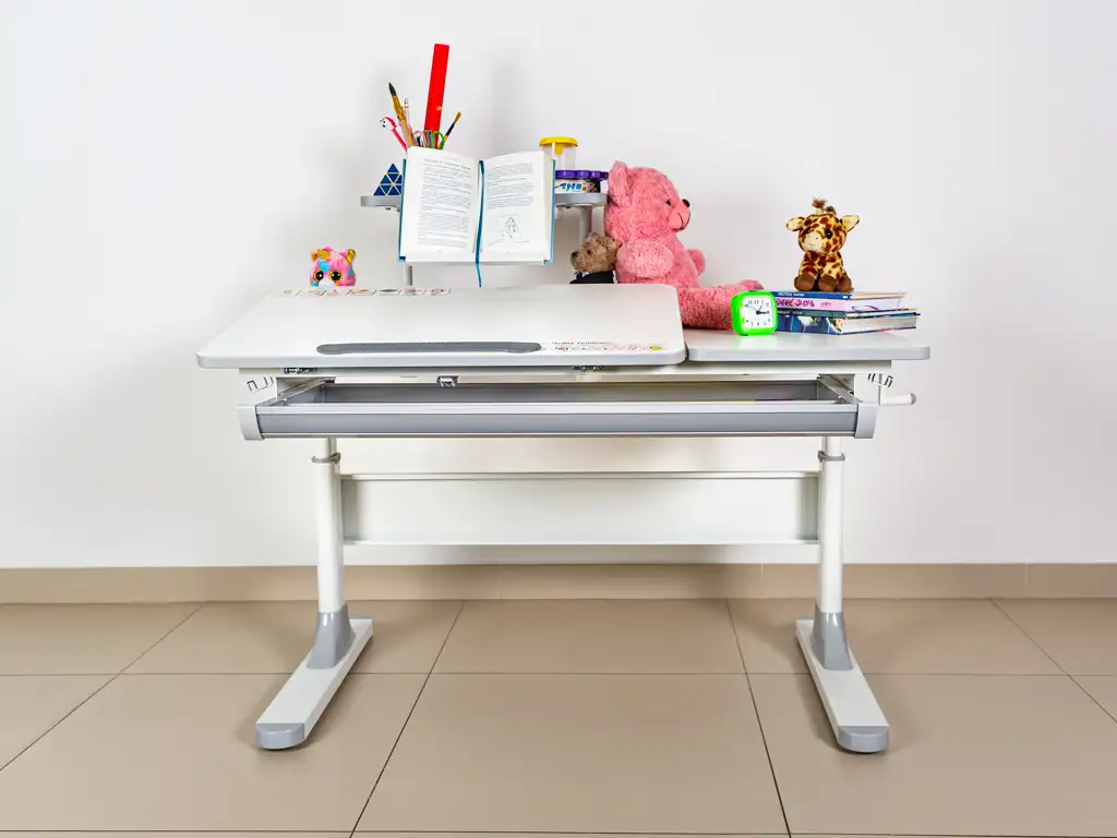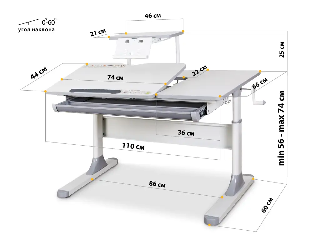 з надбудовою, висувна підставка для книг, з гачком для портфелю, ніжки з регулюванням, ручка регулювання, кольорові накладки