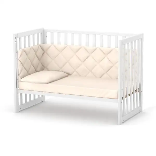 - захисна накладка-гризунок на верхній частині боковин, яка захищає ясна дитини; - всі деталі ліжечка мають безпечні округлі форми та поліровану поверхню;