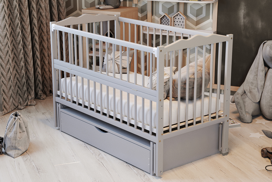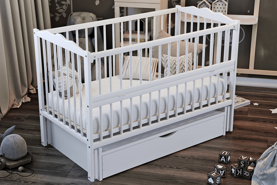 - Містка шухляда: Під ліжком розташована шухляда з кришкою з ДСП для зберігання постільної білизни та дитячого приладдя.