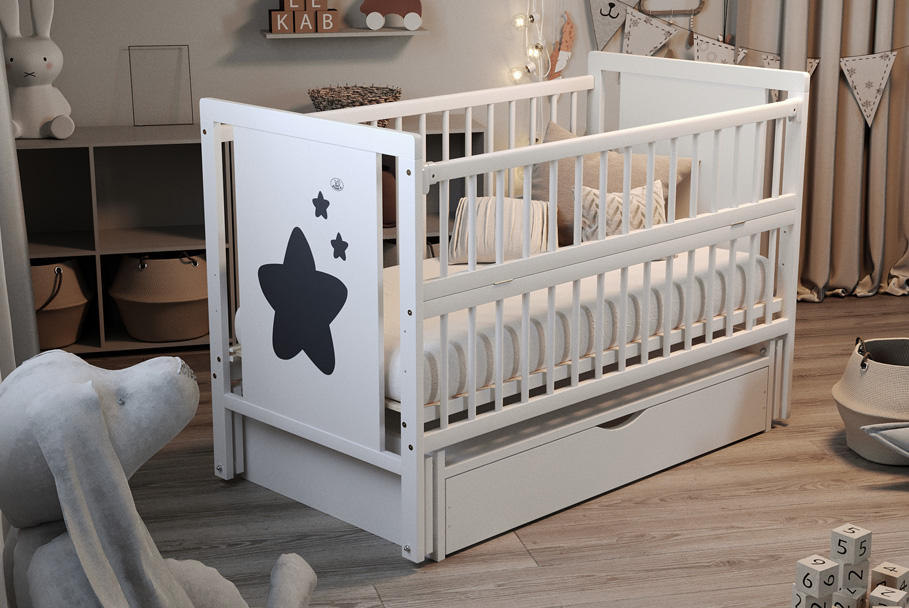 Ліжечко «Зірочка» - це не тільки місце для сну вашого малюка, а й частина інтер'єру вашого будинку. Забезпечте своєму малюкові затишне і безпечне місце для сну з цим прекрасним ліжечком. Гарантована висока якість і довговічність.