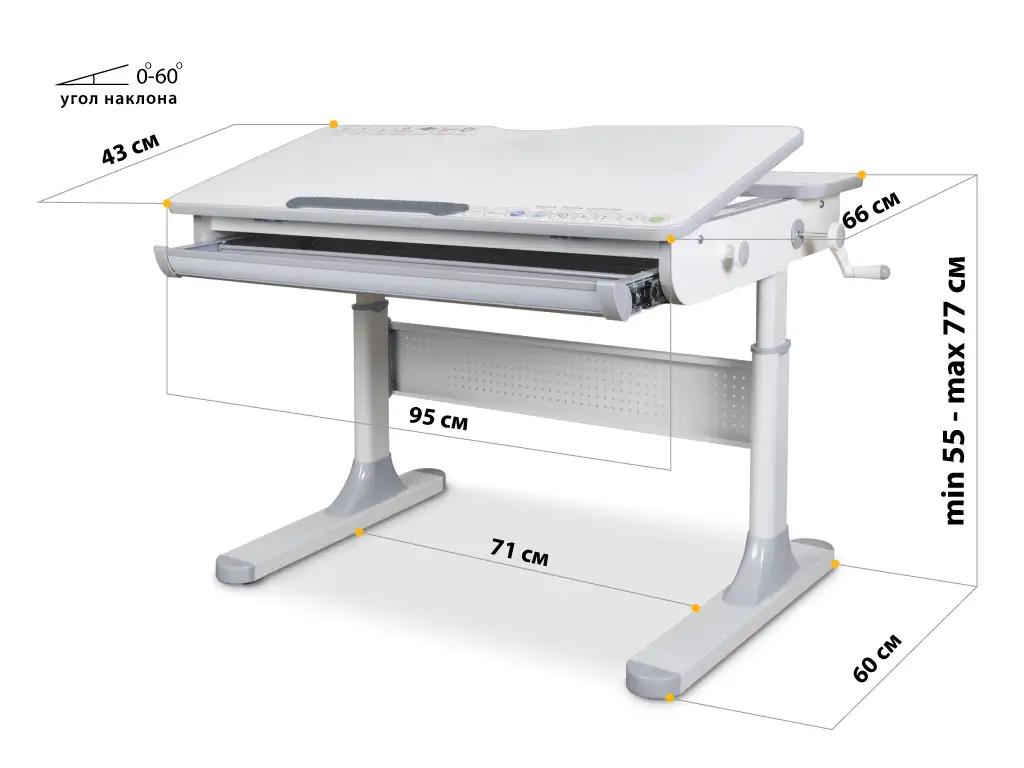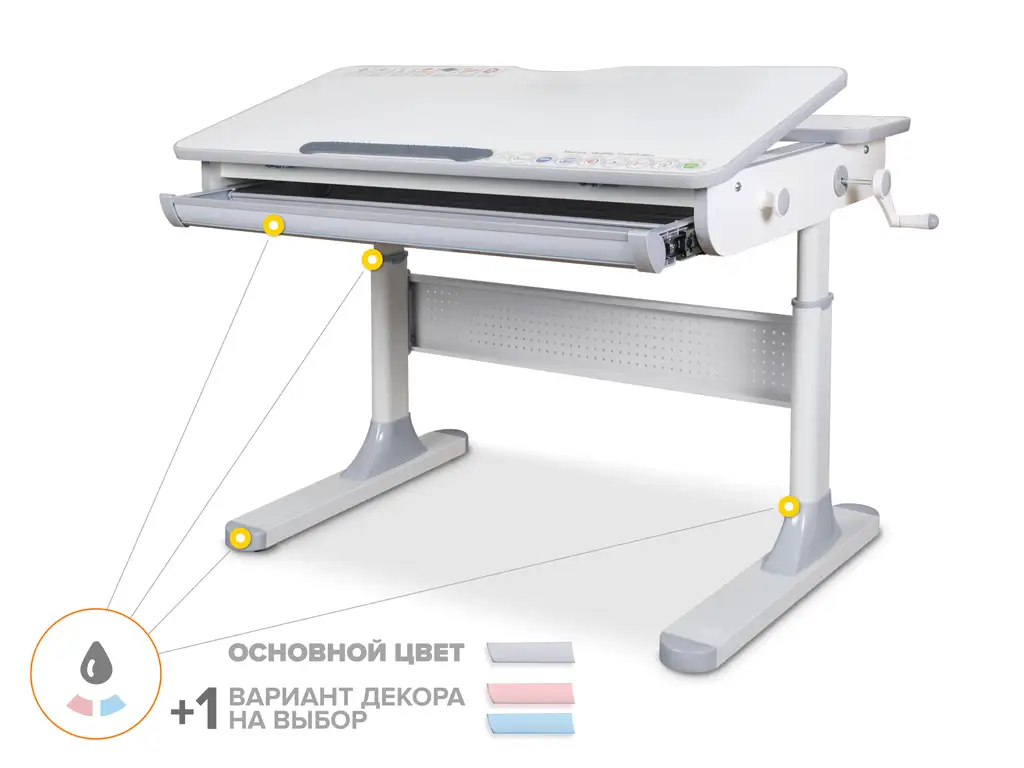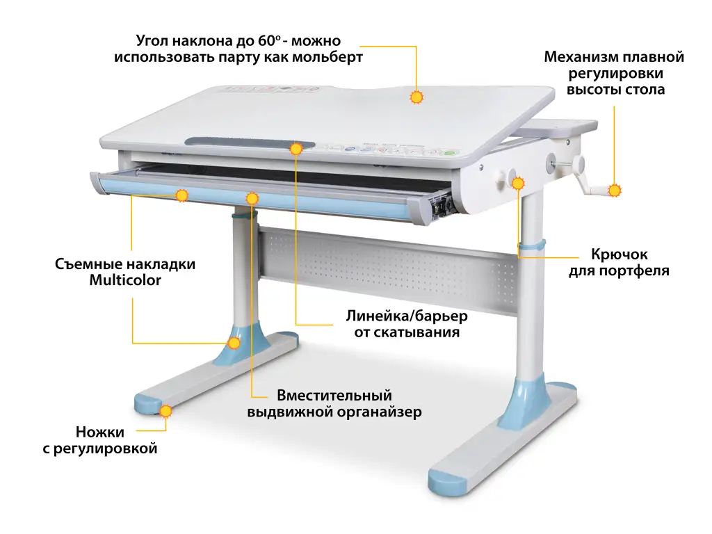 с крючком для портфеля, ножки с регулировкой, ручка регулировки, цветные накладки