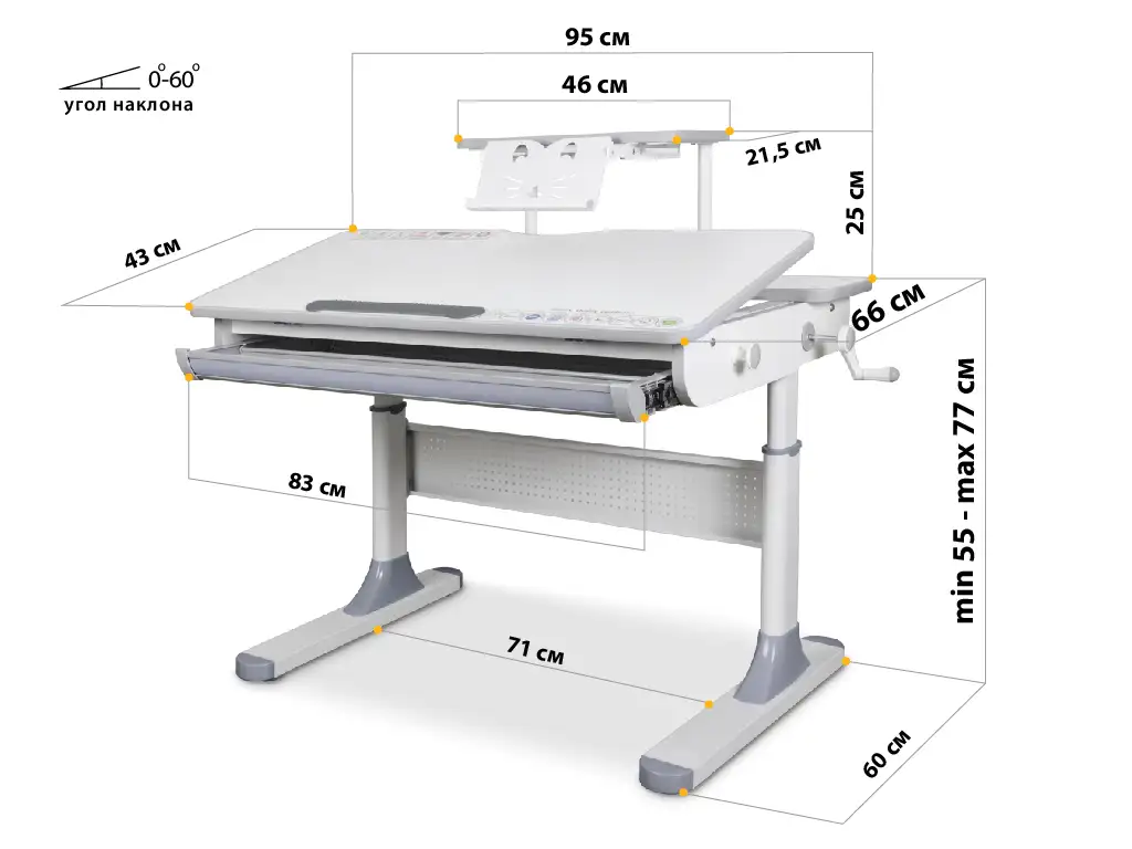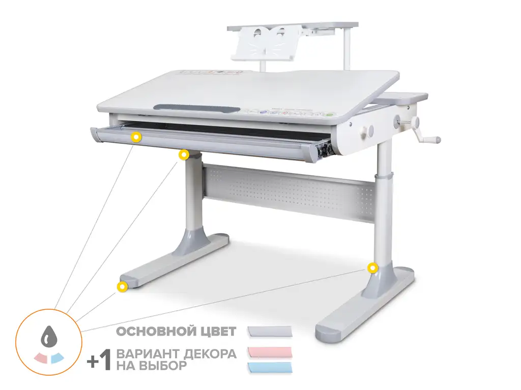 с надстройкой, выдвижная подставка для книг, с крючком для портфеля, ножки с регулировкой, ручка регулировки, цветные накладки