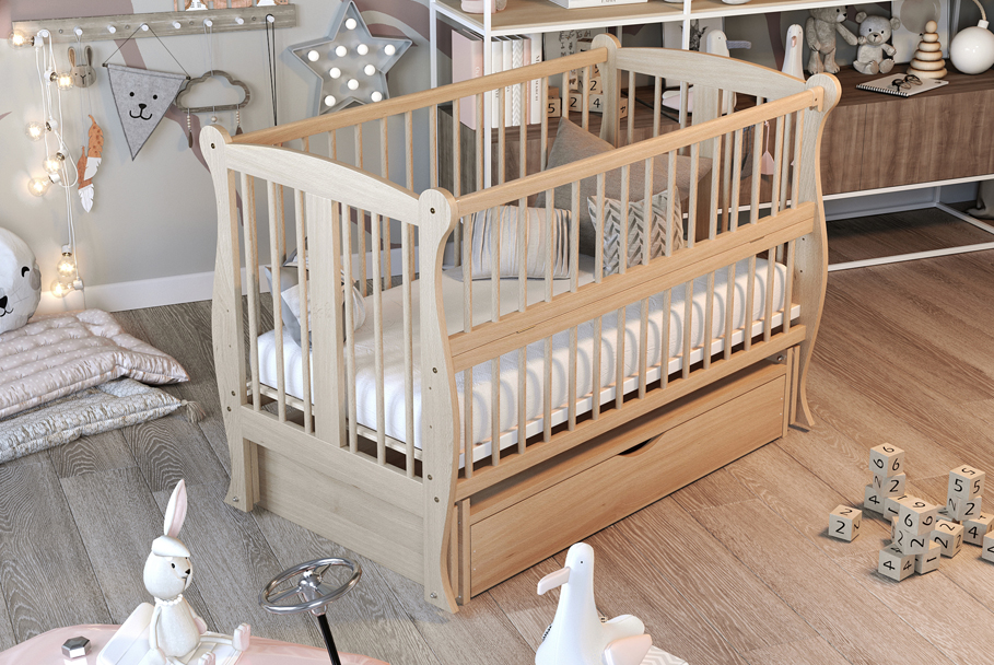 - Поперечный маятниковый механизм качания: Создает уютную атмосферу сна.
