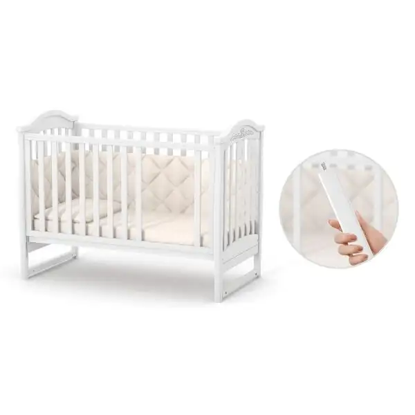 - наличие съёмных спиц (когда ребенок подрастет - сможет самостоятельно выходить и возвращаться в кроватку через место, где вытягиваются спицы);