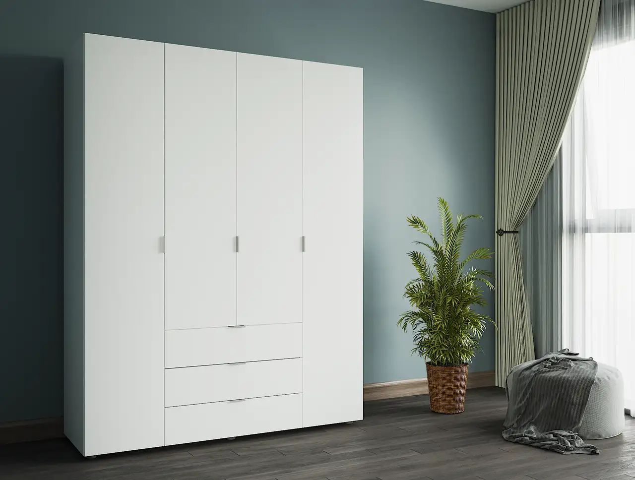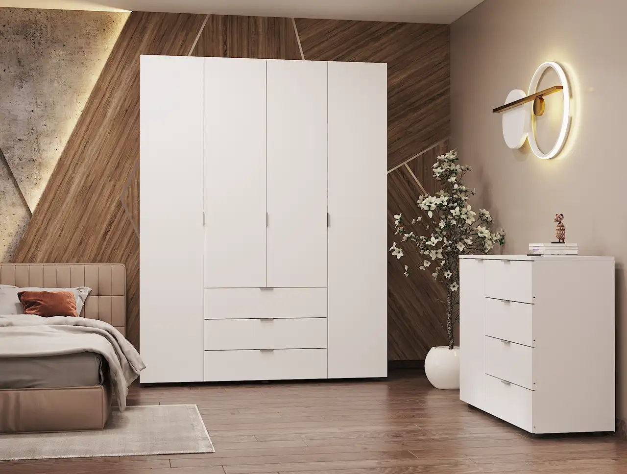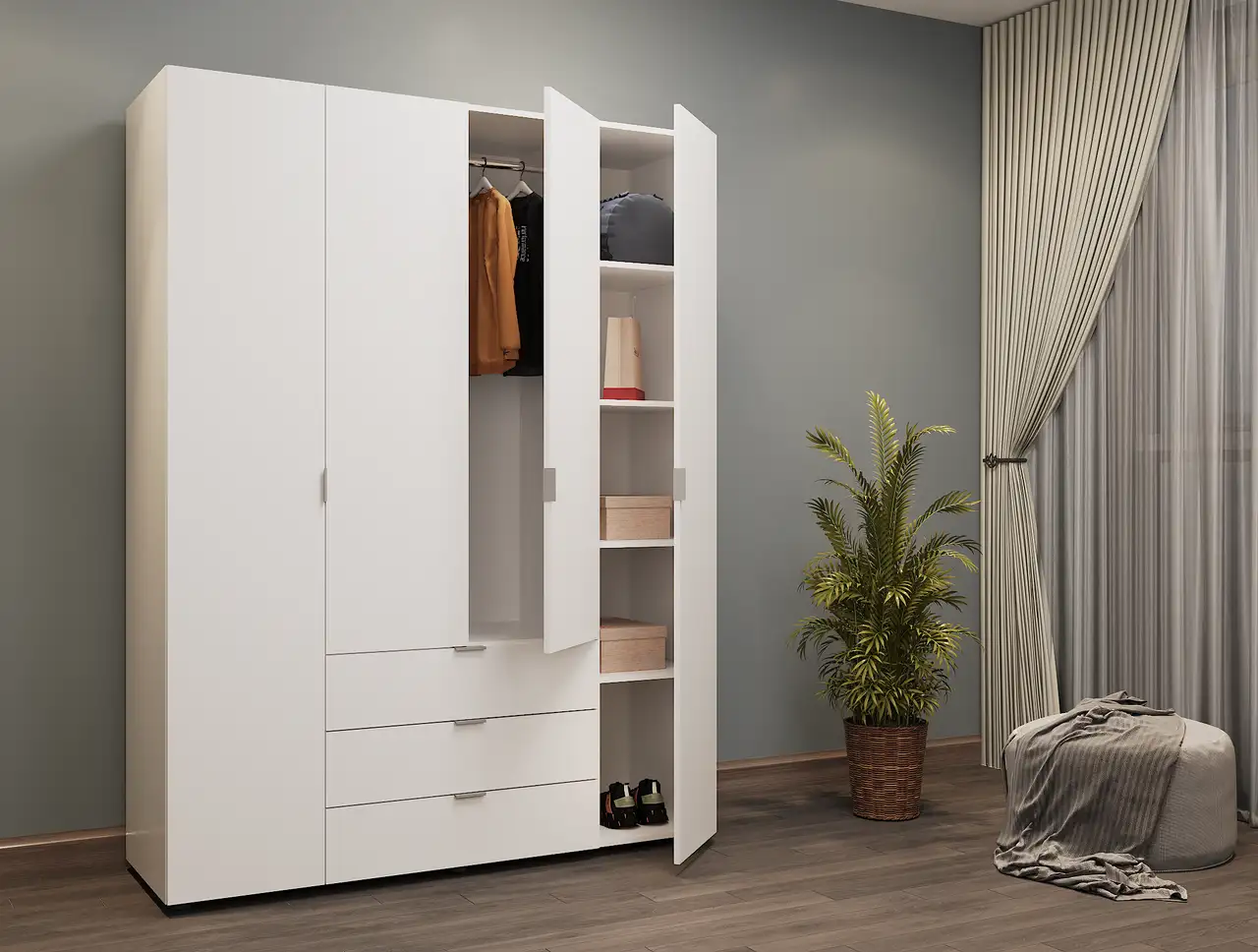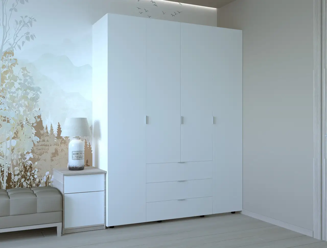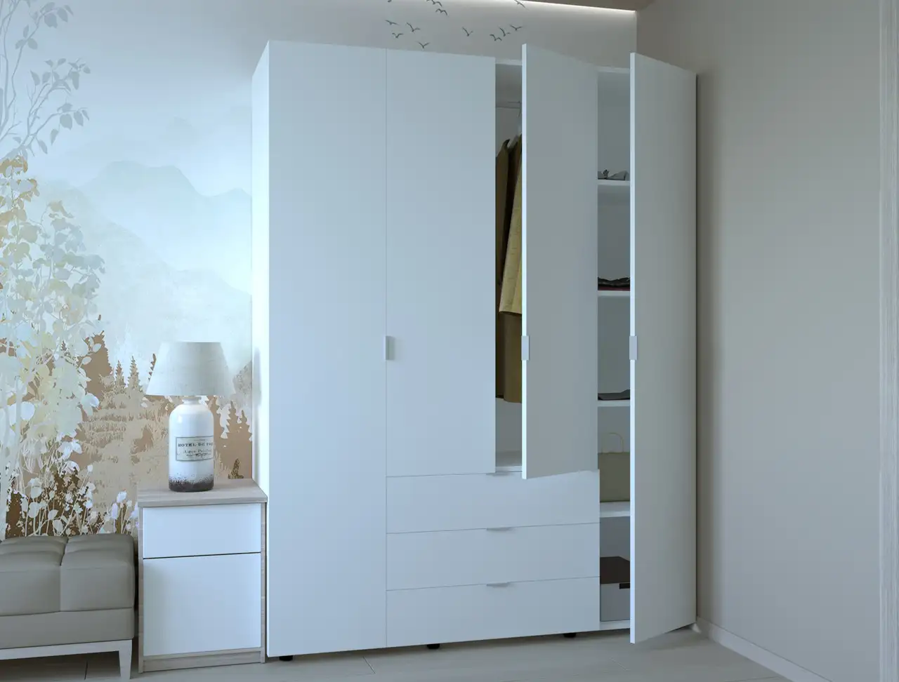 Характеристики товара Распашной шкаф для одежды Гелар Белый 4 ДСП